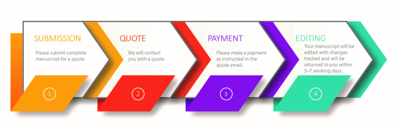 - Payment: If you are happy with our quote, payment should be made as instructed in the email. Once the payment is received, we will start processing your manuscript. The order form should also be completed and emailed back to us.